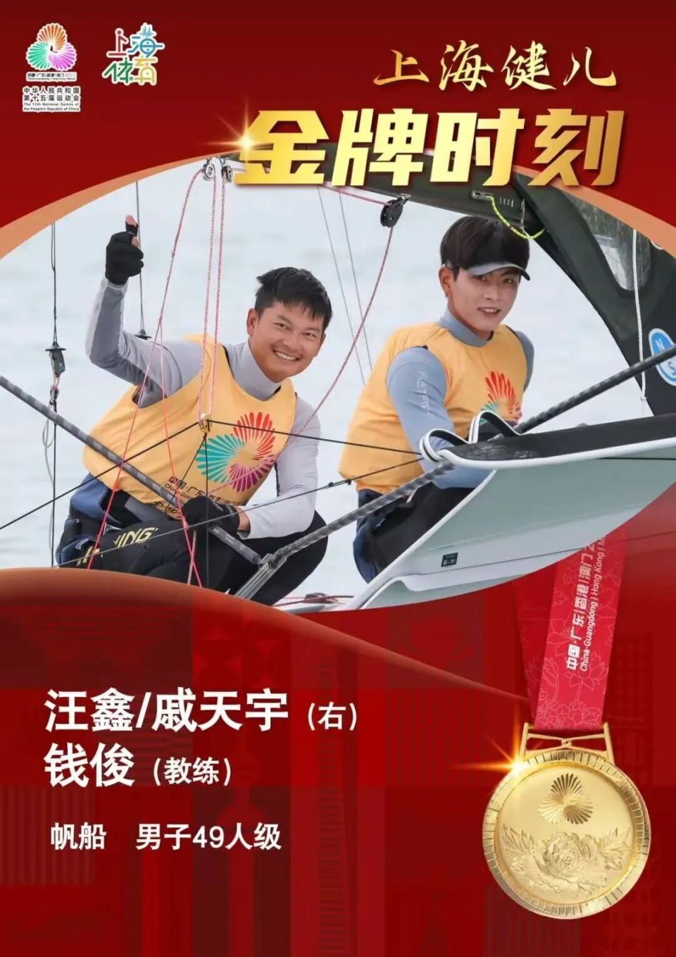 近日,第十五届全国运动会帆船项目男子49人级-第二阶段-第14轮的比赛在广东海上项目训练中心落幕,上海运动员戚天宇携手队友夺得冠军!